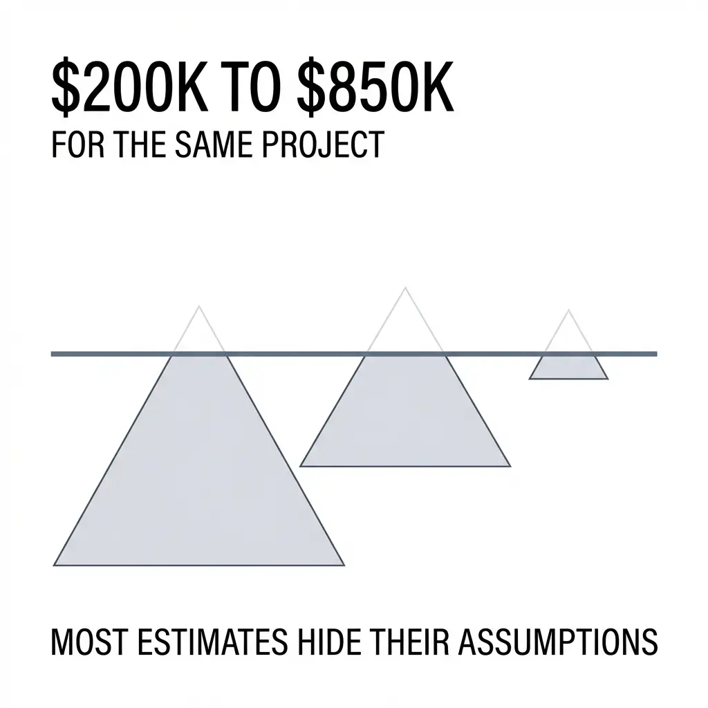 Three vendors look at your project brief. One quotes $300K, another $550K, and the third comes in at $425K. You assume they’re pricing different scopes.