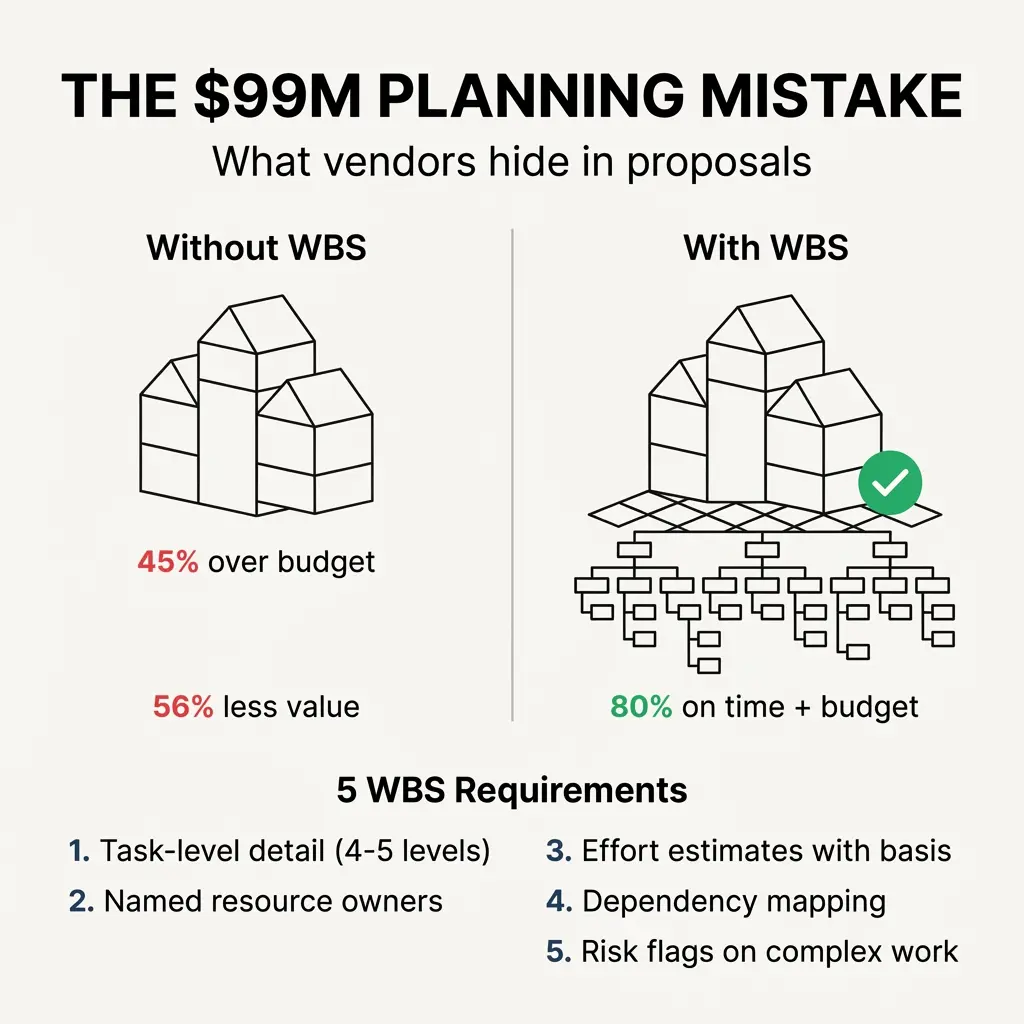 During vendor presentations, I ask specific questions about their WBS. The answers tell me everything.