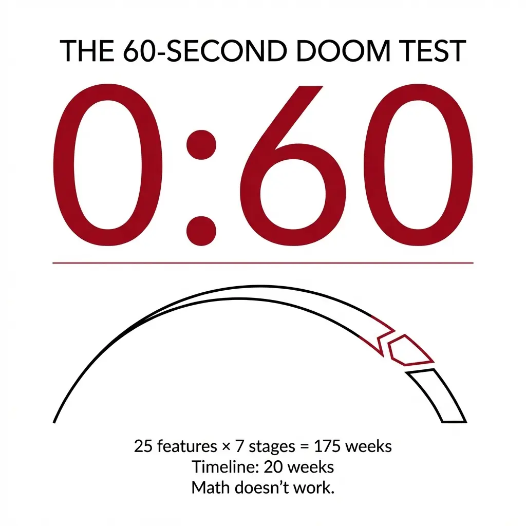 The math: 25 features × 7 stages = 175 weeks of effort. You have 20 weeks of calendar time.